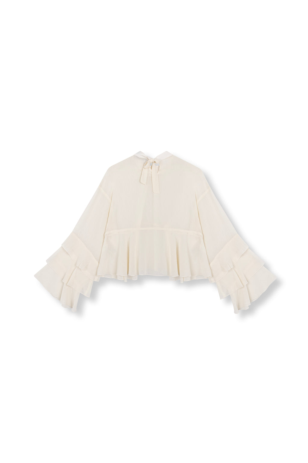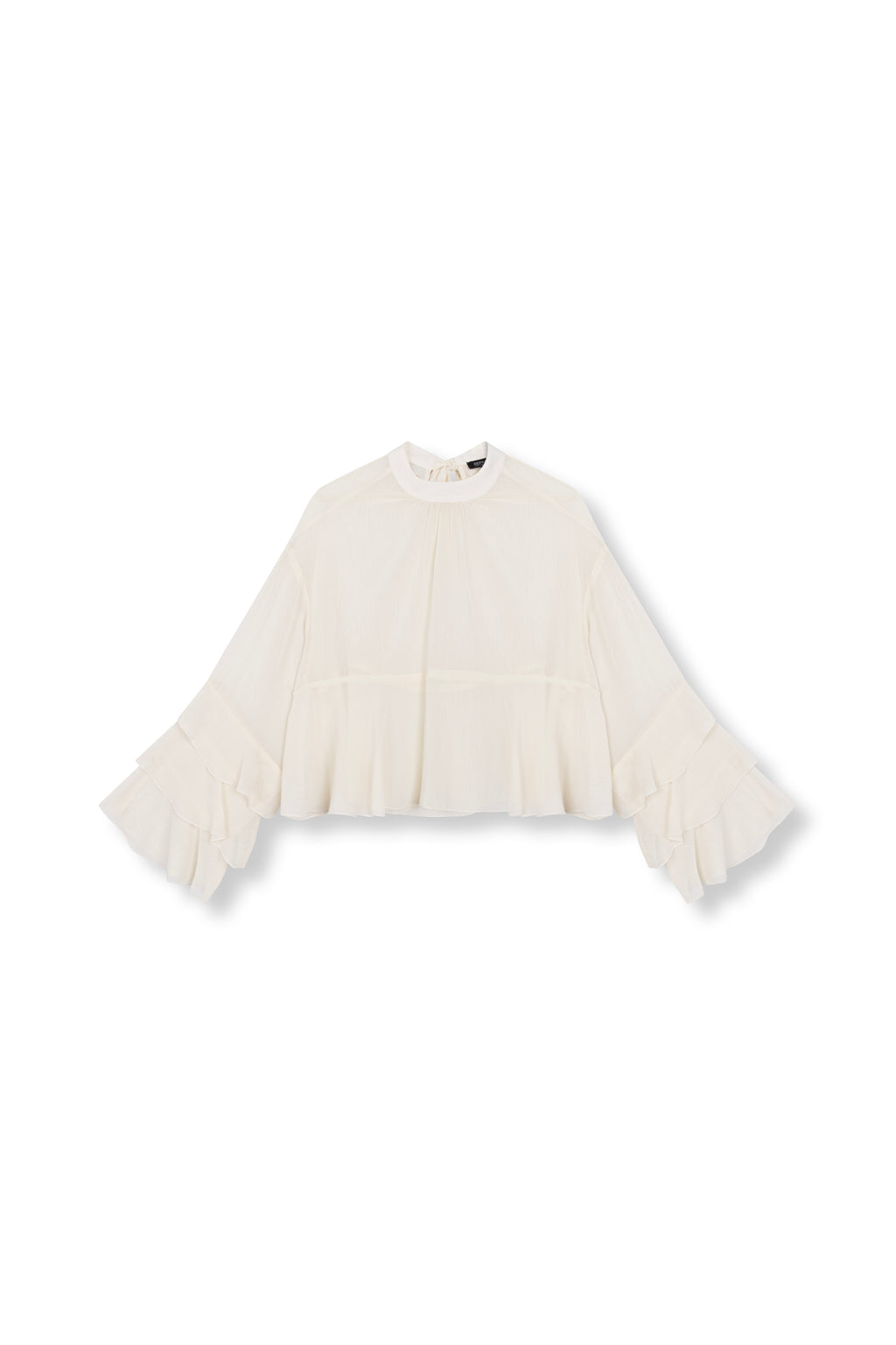 • Designed with ruffled detailing along the hem and sleeves.